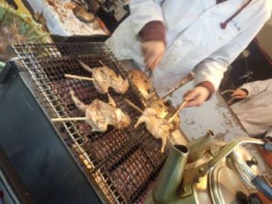 伏見稲荷の参道のお店で有名なのが、『スズメとウズラの焼き鳥』です。